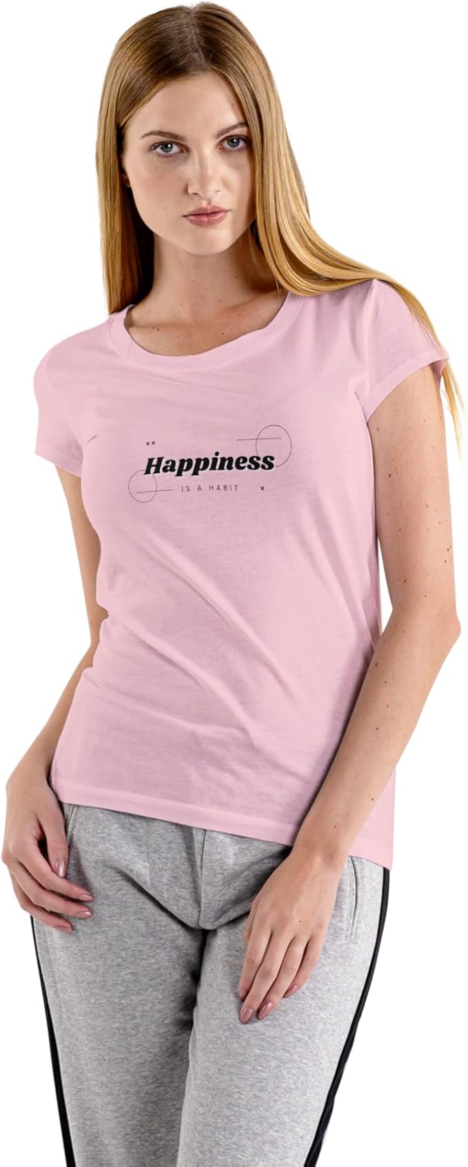This Women T-shirt featuring the message ‘Happiness is a habit’ exudes positivity and comfort. Perfect for women who value happiness and want to spread good vibes. Ideal for casual wear, lounging, or as a statement piece. Relevant for birthdays, holidays, or everyday wear.